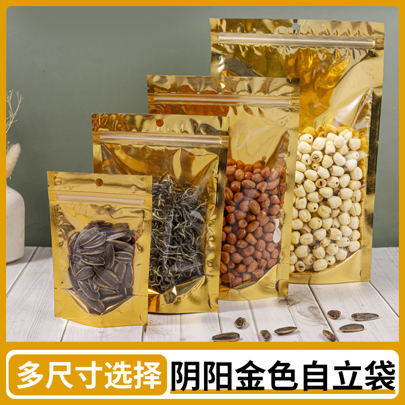 食品包装袋アルミ箔袋金色陰陽自立袋自封袋半透明シール袋茶葉袋