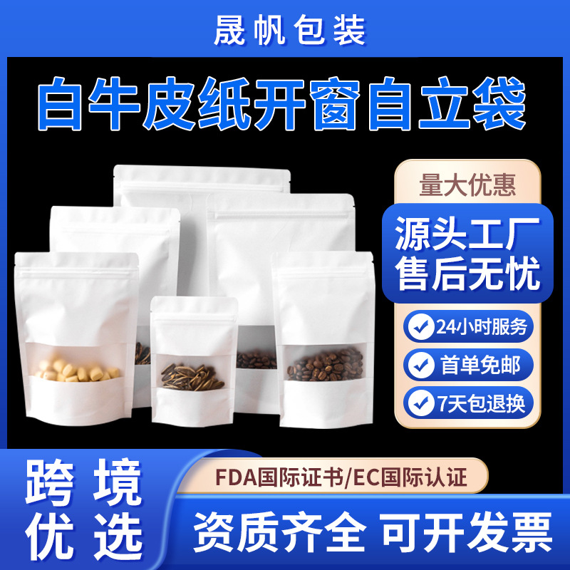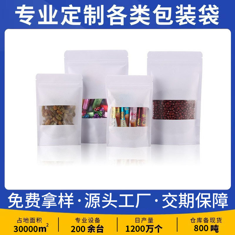 白いクラフト紙自封袋フロスト開窓クラフト紙袋赤ナツメ瓜子食品包装袋密封自立袋