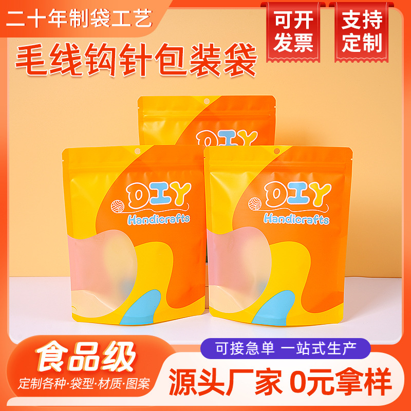 スポット毛糸かぎ針包装袋diy手作りボール編み材料袋自立自封八辺ビニール袋卸売り
