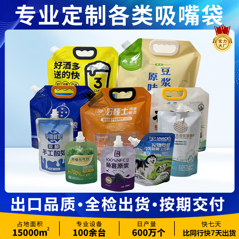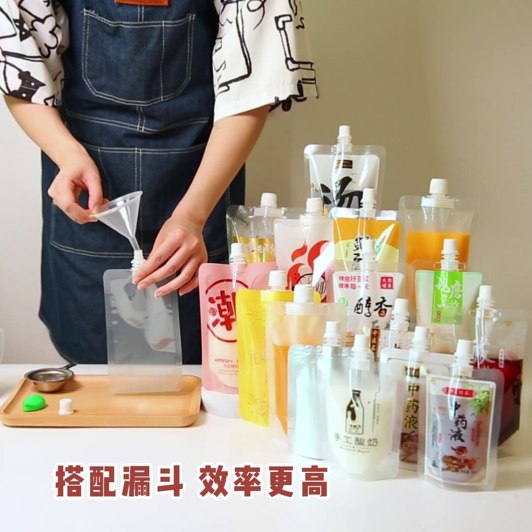 大口径吸口袋500ミリリットル梅スープ分注袋使い捨て液体包装豆乳透明吸口袋