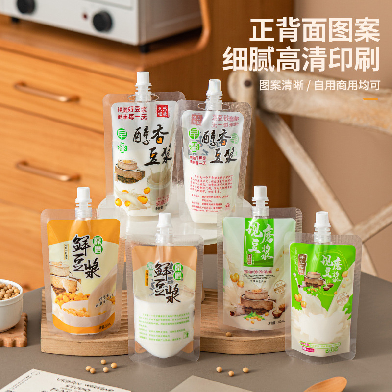 豆乳袋使い捨て商用耐高温飲料液体分注袋新鮮豆乳包装透明自立口袋