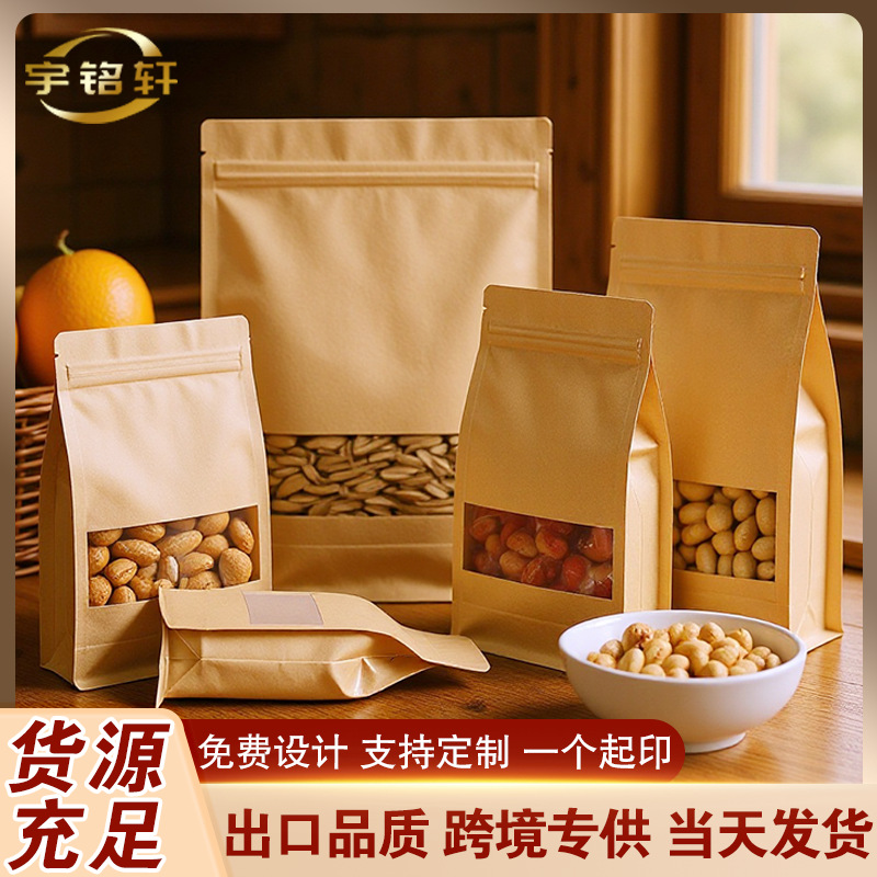 クラフト紙八辺封袋卸売りナッツ間食花茶密封袋フロスト自立チャック袋窓自己封袋