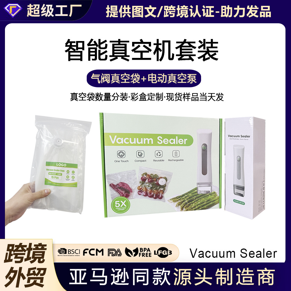 食品グレードライン真空バッグセットクロスボーダーec SKUエンボスシールpeバッグ白い空気バルブ圧縮バッグ