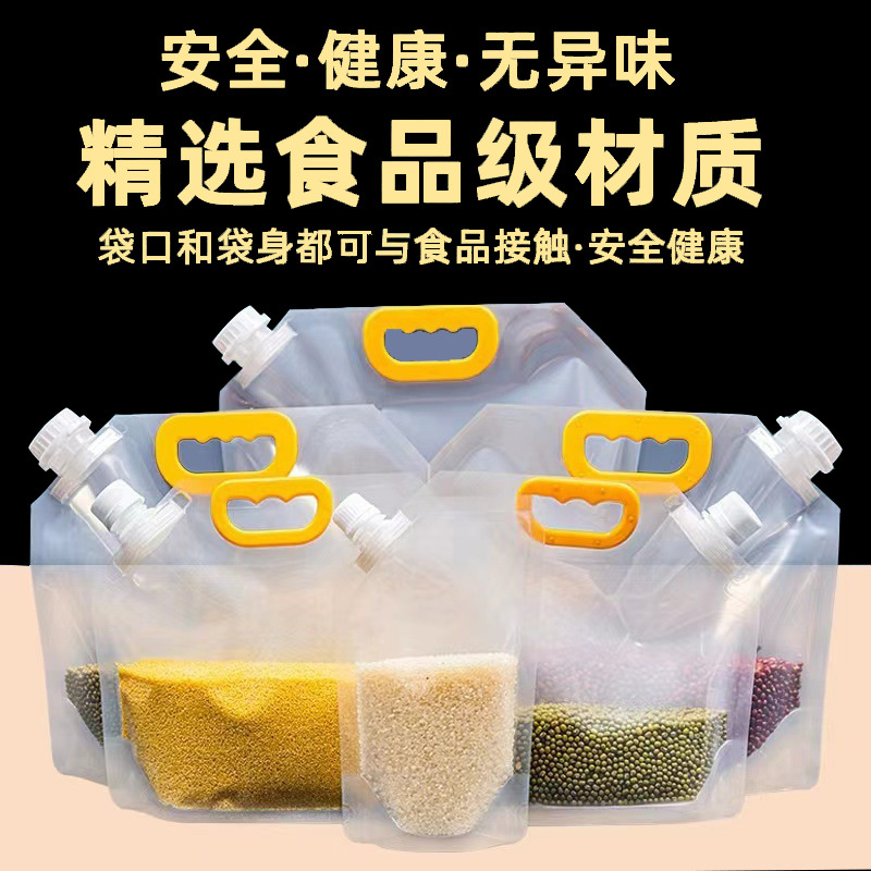 現物五穀雑穀収納袋大口径食品防湿携帯用自立型ノズル透明密封袋