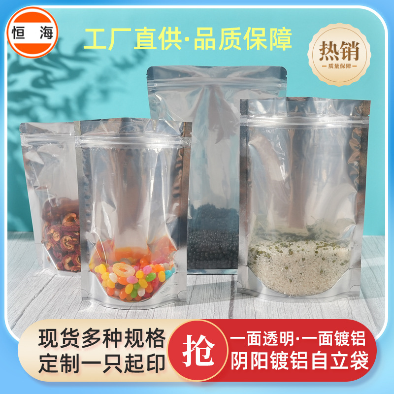 アルミ箔メッキ陰陽自封袋半透明自立袋アルミ箔ビニール袋メーカースポット食品ジッパー包装袋