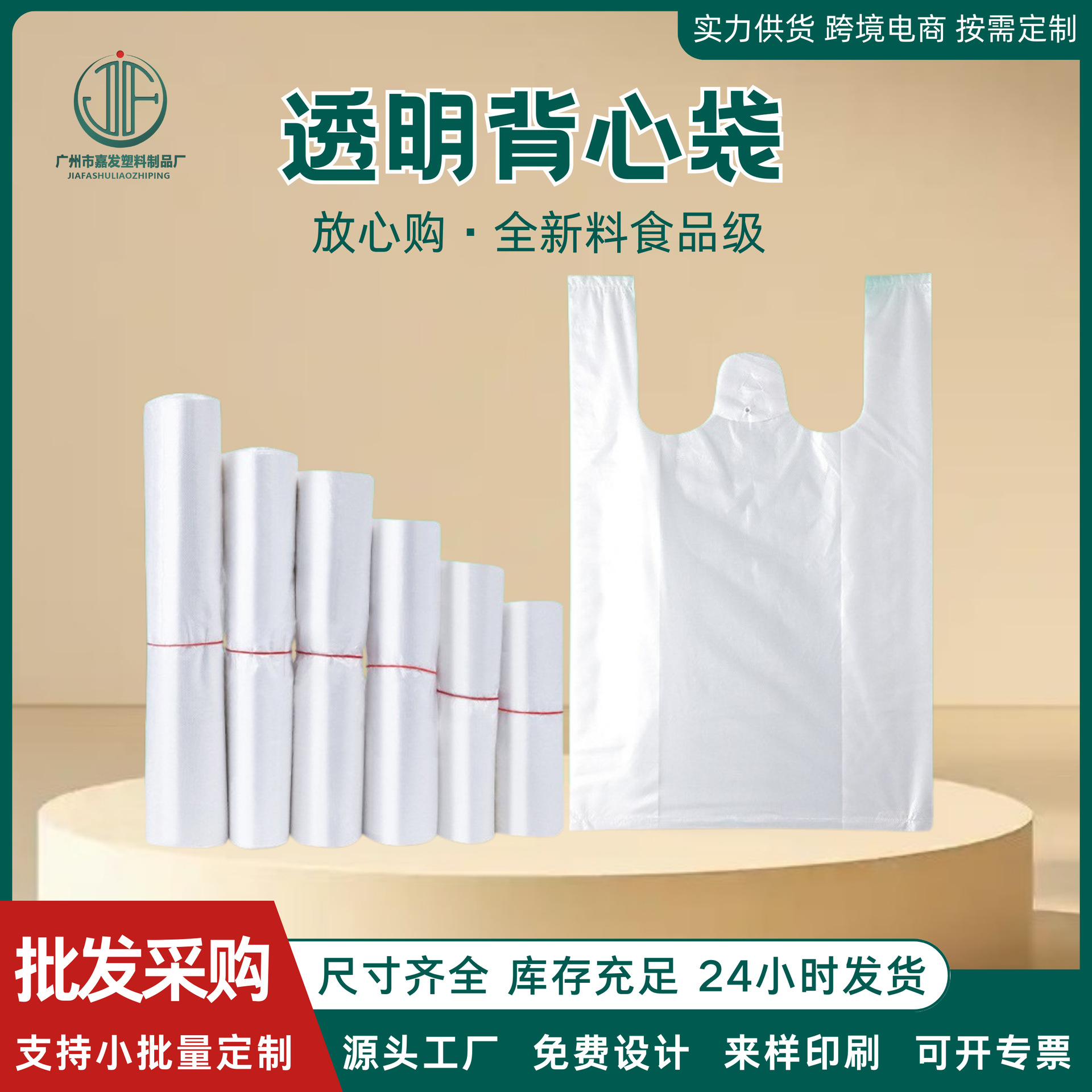 嘉发 厚手 白色 透明 食品用プラスチック袋 使い捨て 手提げ ベスト型包装袋 テイクアウト用包装袋