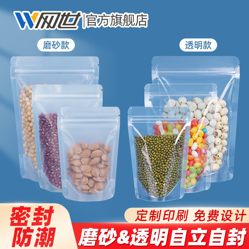 ネット世フロスト透明自立袋食品自封袋間食密封袋プラスチック袋茶葉包装袋印刷