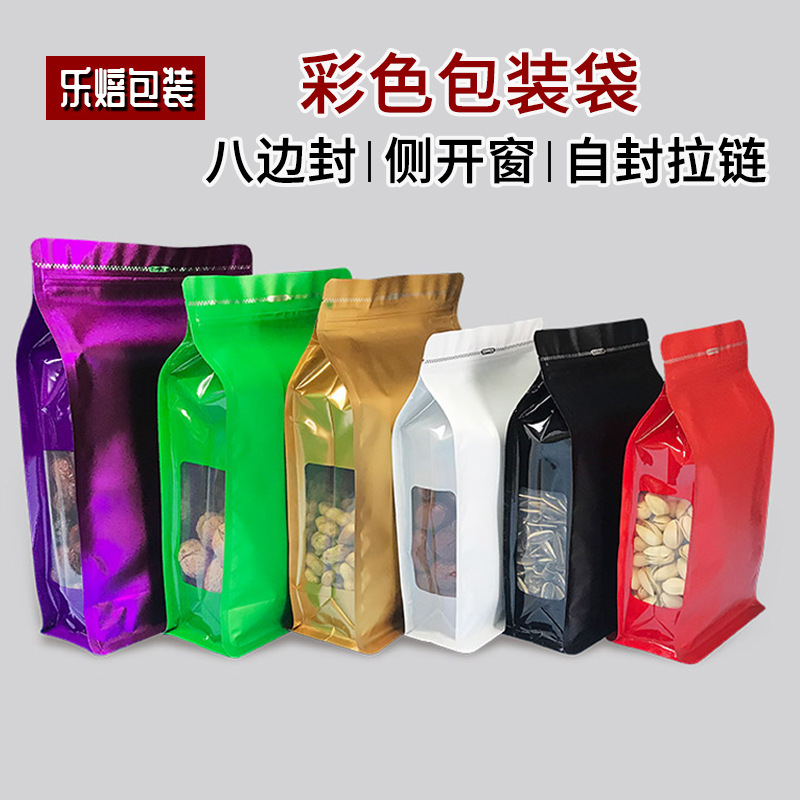 カラーアルミメッキ八辺封袋カスタム窓開けコーヒー袋猫犬食糧分注袋カスタム茶葉ナッツ包装