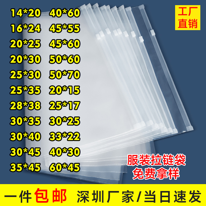 透明PE無粉ジッパー袋、在庫あり、卸売、衣類、水着、セーター、スウェットシャツ、ダウンジャケット、高級衣料品包装袋