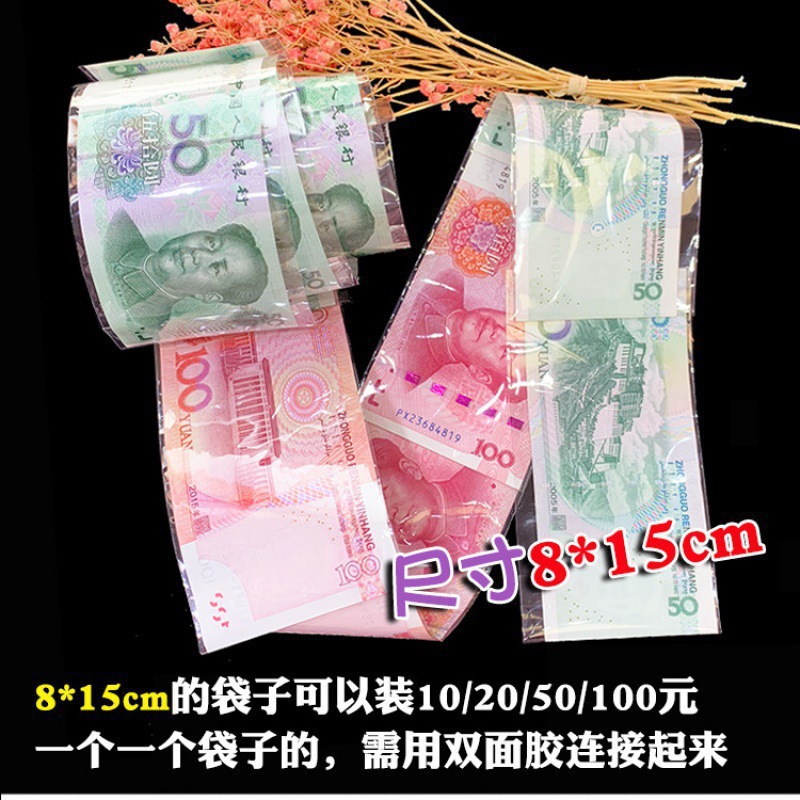 お金を入れる透明袋、引き出し式ケーキ紙幣包装袋、引き出し式紙幣誕生日サプライズ粘着袋