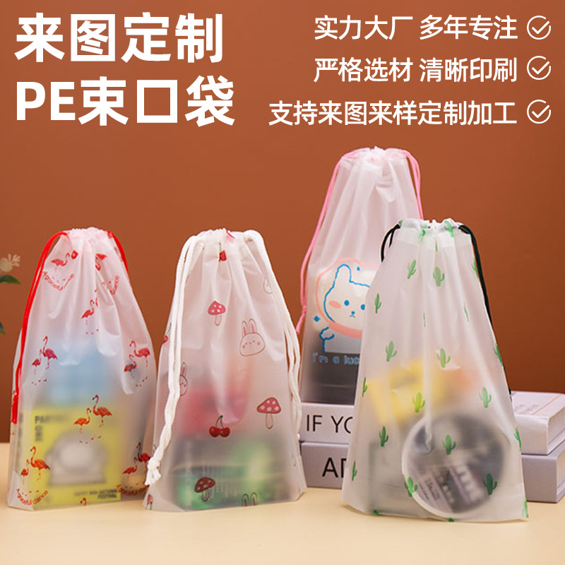Pe巾着袋靴旅行収納袋透明つや消し靴下プラスチック包装袋現物卸売り