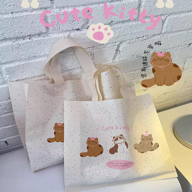 漫画猫子供服婦人服ショッピングバッグ肥厚衣料品店ハンドバッグプラスチックギフトバッグプリントロゴ付き