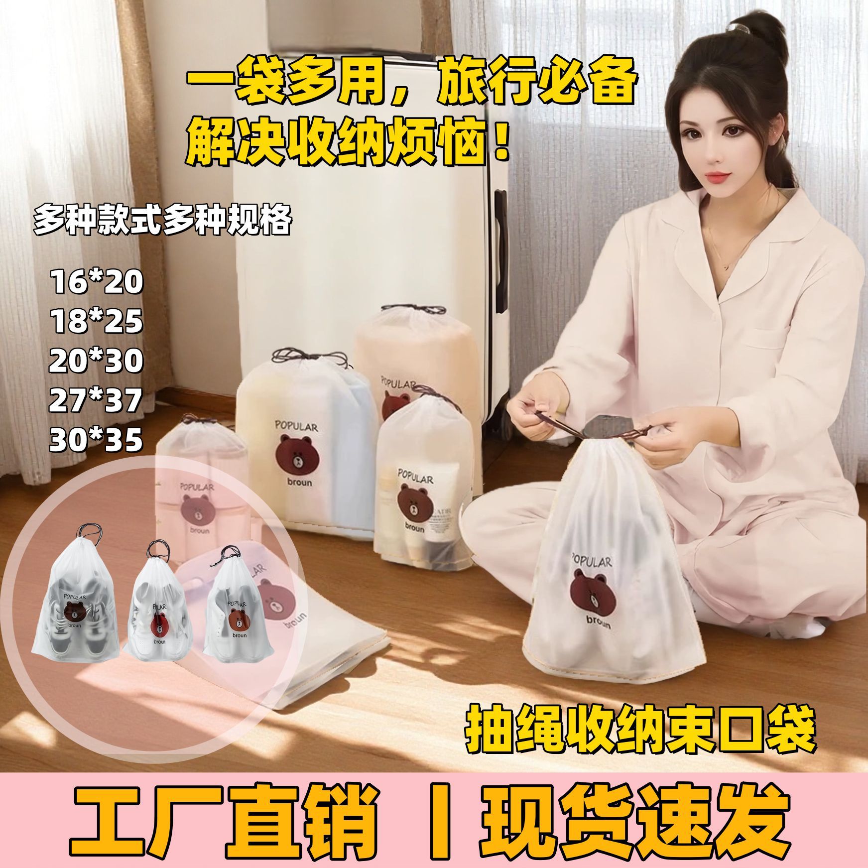 スポット pe クマ巾着ポケットつや消し半透明ポータブル巾着袋 eva 巾着衣類包装袋卸売