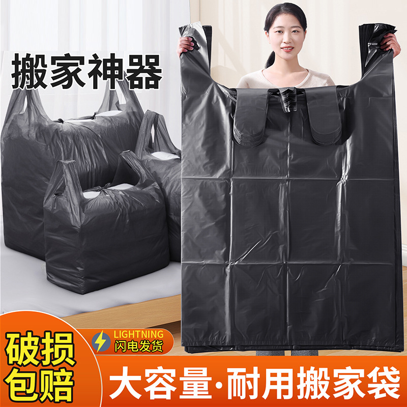 黒の特大ビニール袋、大きいサイズの厚いベストバッグ、移動バッグ、衣類の厚いベスト、大きな正方形のバッグ