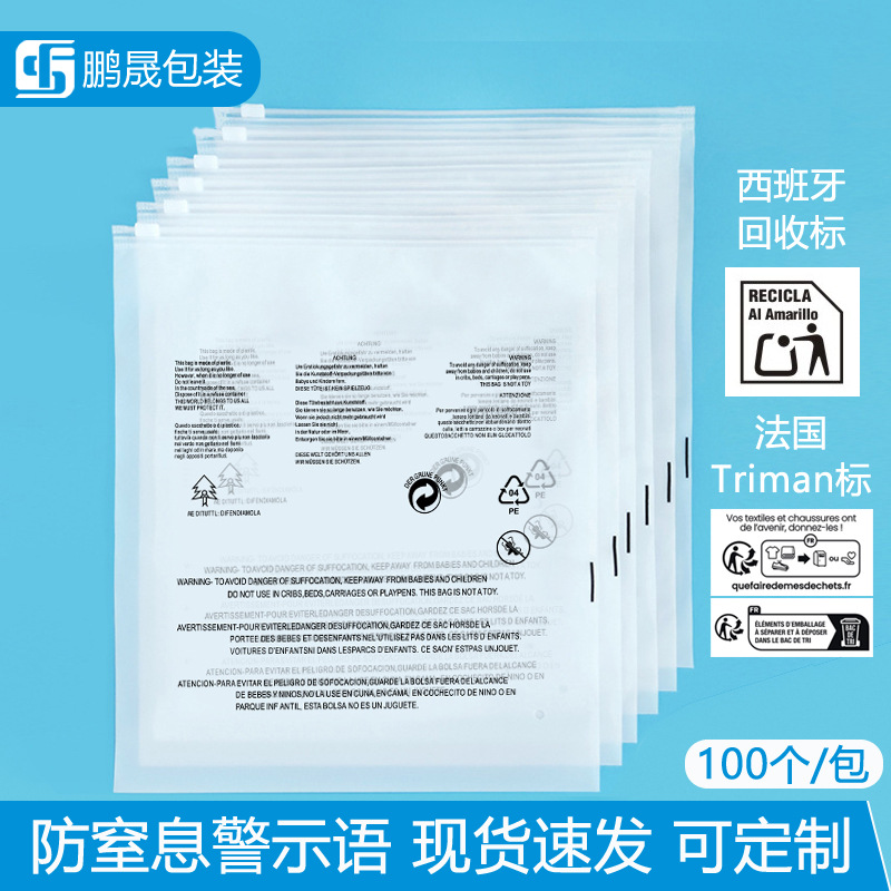 PEジッパー袋、ビニール袋、衣類用ジップロック袋、靴下・下着収納包装袋、印刷ロゴ入り、つや消しシール
