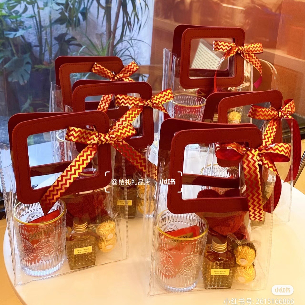 お土産袋ins風結婚女性花嫁プレゼント袋喜糖箱手提げ透明ギフト袋空礼箱