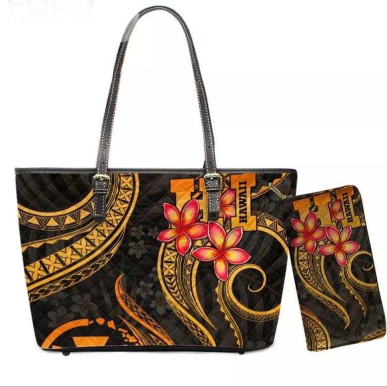 ショッピングバッグ部族ポリネシアプリントpuレザーハンドバッグ財布2点セット手提げ袋