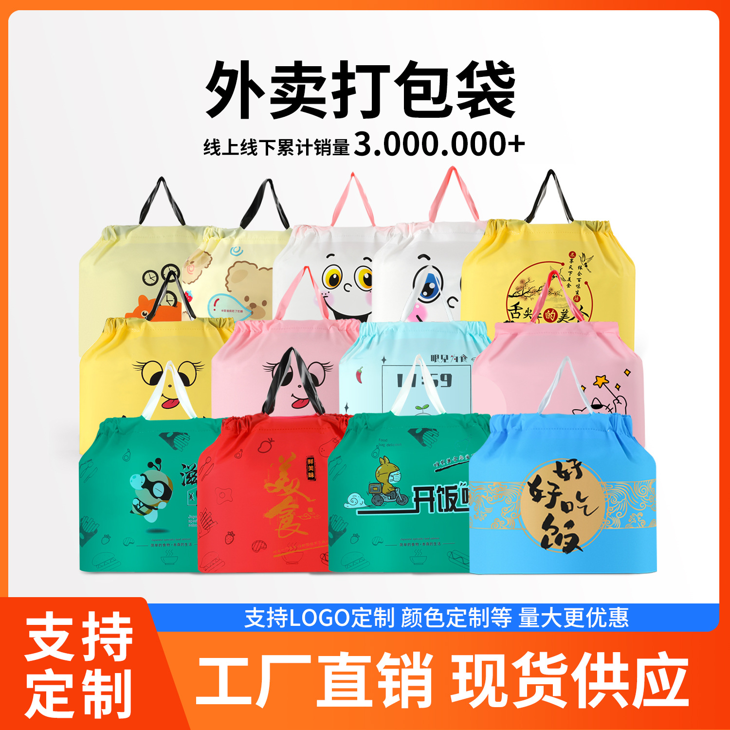 工場直売使い捨て包装袋二杯袋の出前防水ビニール袋の手提げ一杯袋のカスタマイズ
