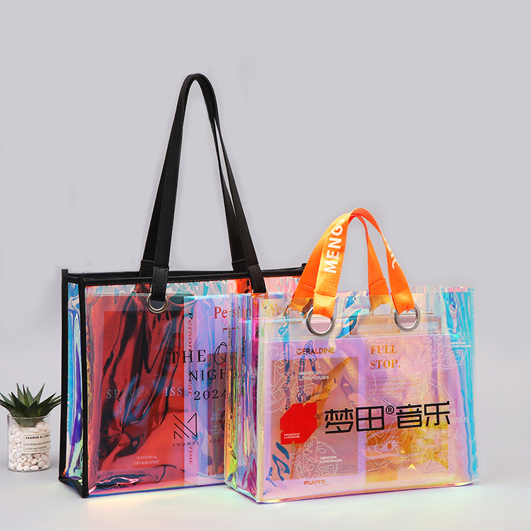 PVCレーザー手提げ袋透明ゼリーバッグ幻彩レジ袋プレゼントビニール袋製作卸売りロゴ