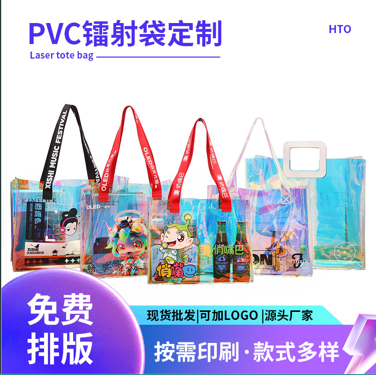 PVCレーザー手提げ袋お土産包装袋透明ショッピングビニール袋広告宣伝ゼリー包装ロゴ