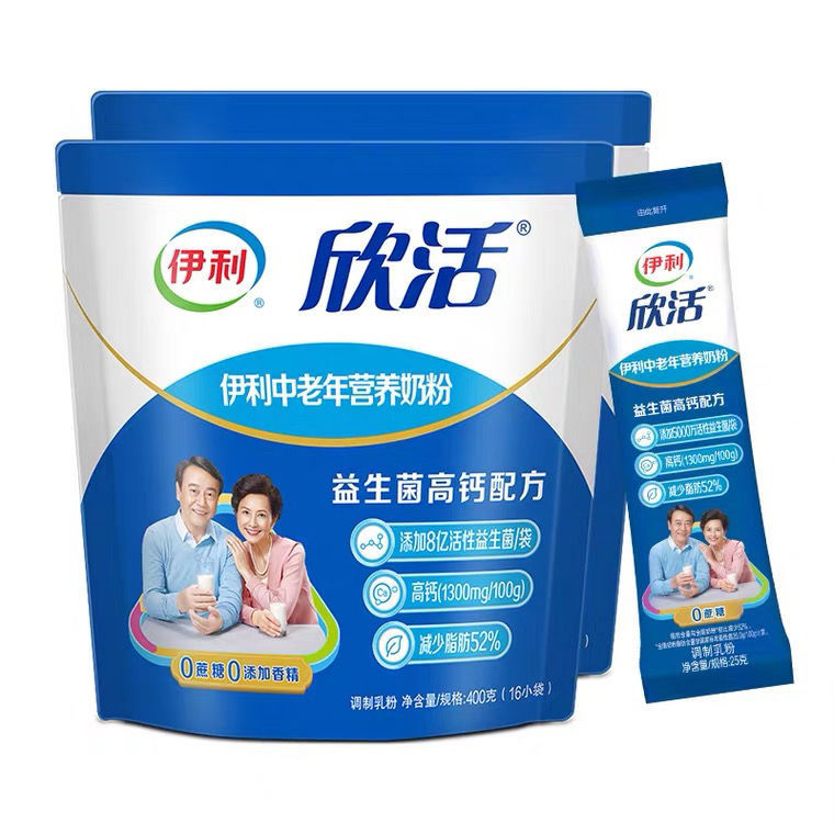 伊利欣活中高年多次元高カルシウム粉ミルク400g袋入り16個の小条にセレンが豊富で、砂糖が添加されていません。