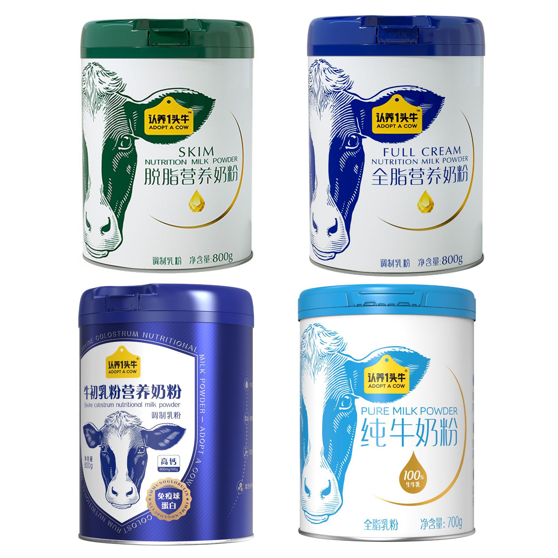 牛を採用した全脂肪高カルシウム初乳栄養粉乳、中高年向けの脱脂粉乳、ベーキング朝食ドリンク