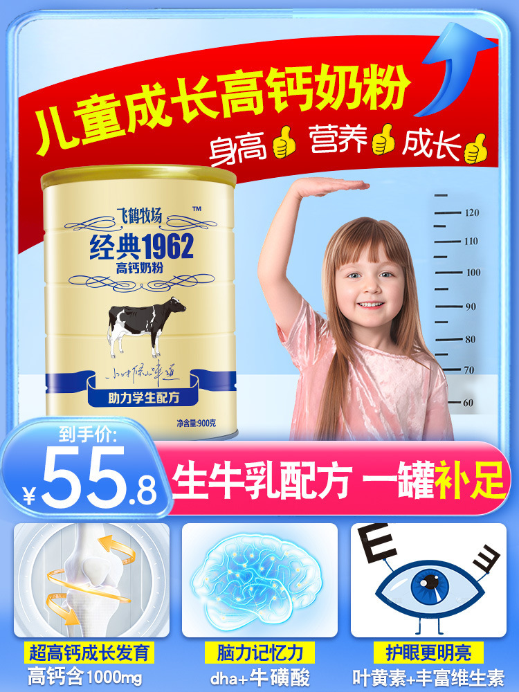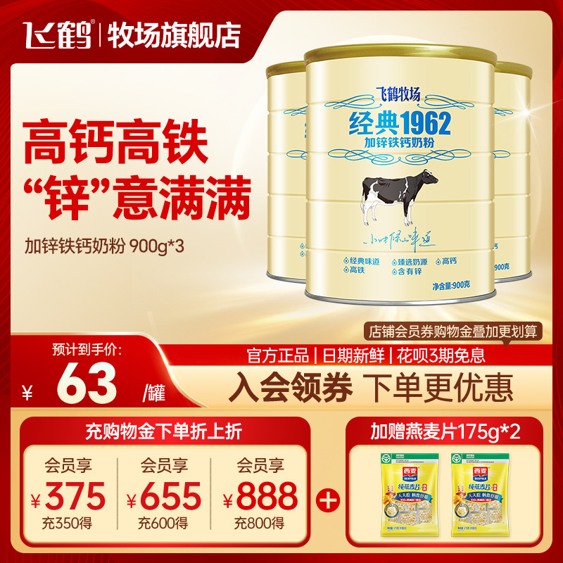 Feihe 粉ミルク 大人、学生、青少年向け 高カルシウム 鉄 亜鉛 カルシウム サプリメント クラシック 1962 公式フラッグシップ 900g*3 缶