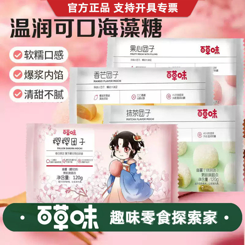 百草味爆糊麻芋団子120g桜/抹茶/香芒/いちご箱規72包装網紅菓子