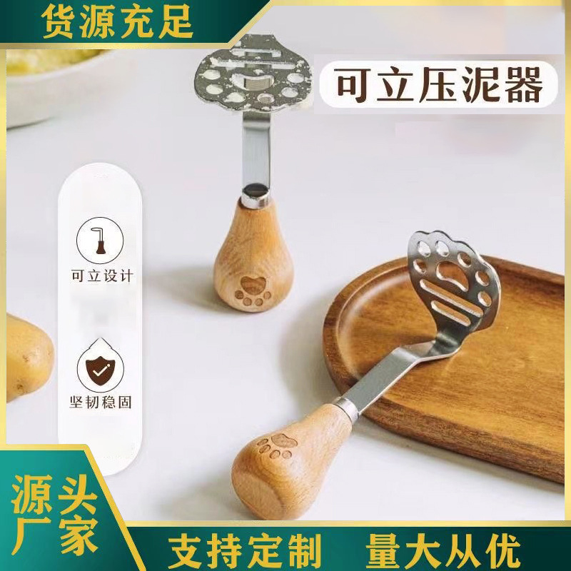 リトルベア ステンレス製ポテトマッシャー 多機能タロイモマッシャー スタンド式ガーリックプレス キッチンガジェット
