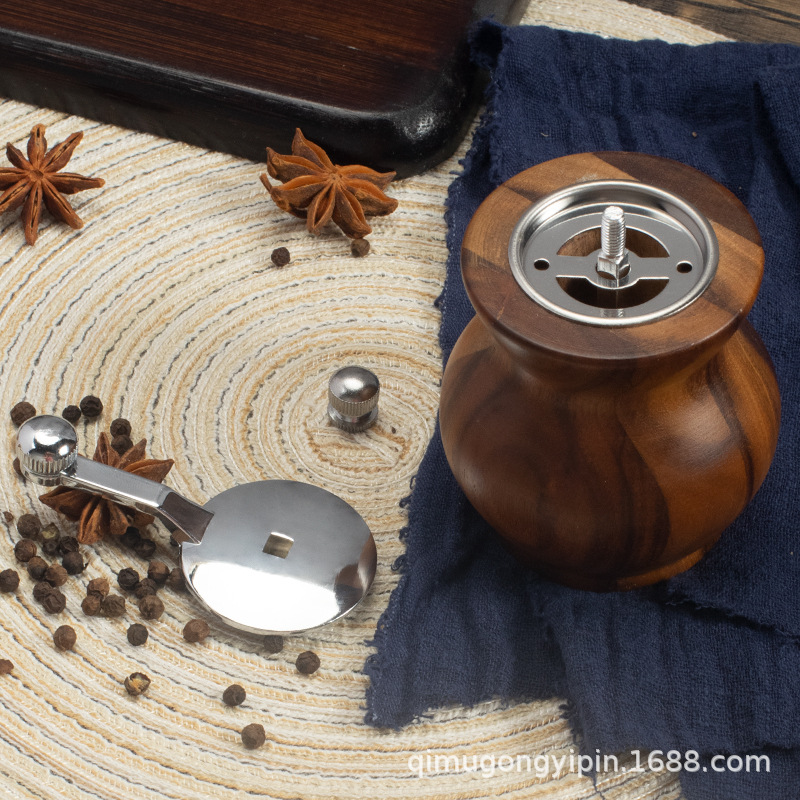 原木調味研磨器手動多工能黒色実木胡椒研磨器香料研厨房調味瓶