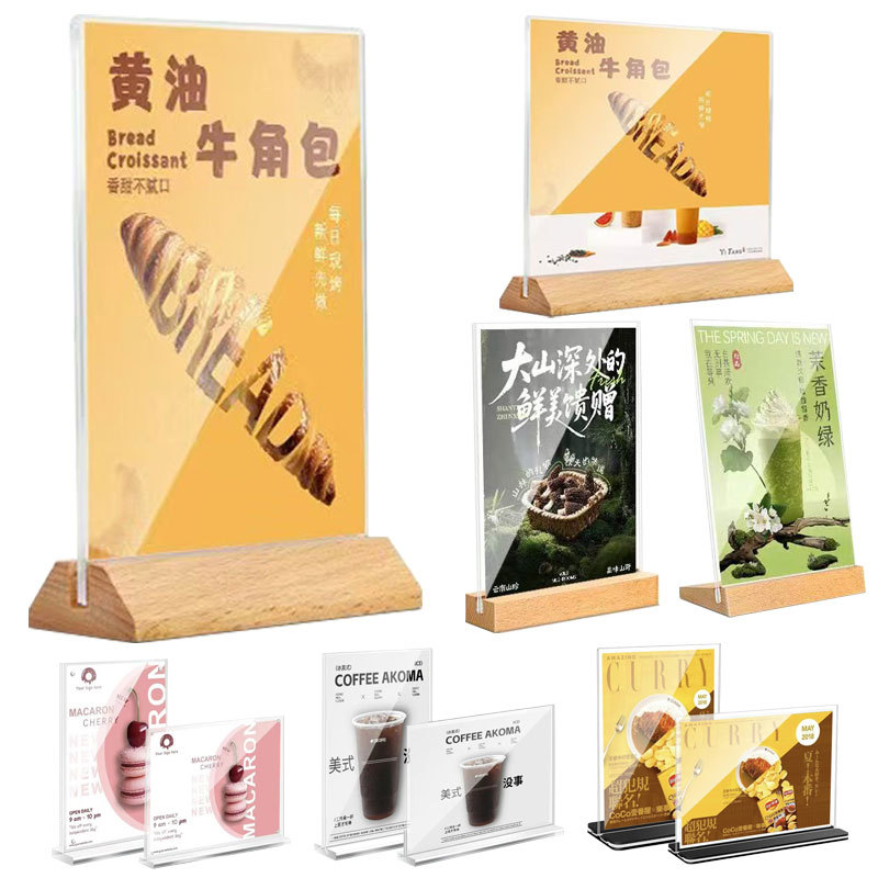 A4 アクリルテーブルカードディスプレイカードブナテーブルサイン A5 木製広告スタンドデスクトップメニューワイン価格テーブルカード