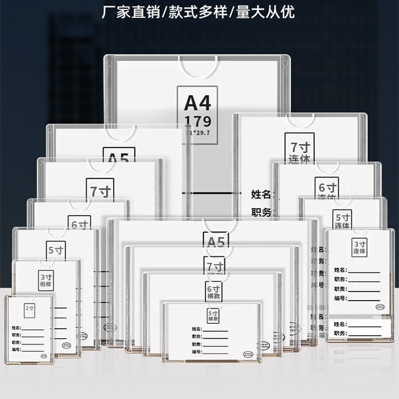 カスタム名入りIDカード両面透明カードホルダー、横型・縦型、会社部門従業員カード卸売