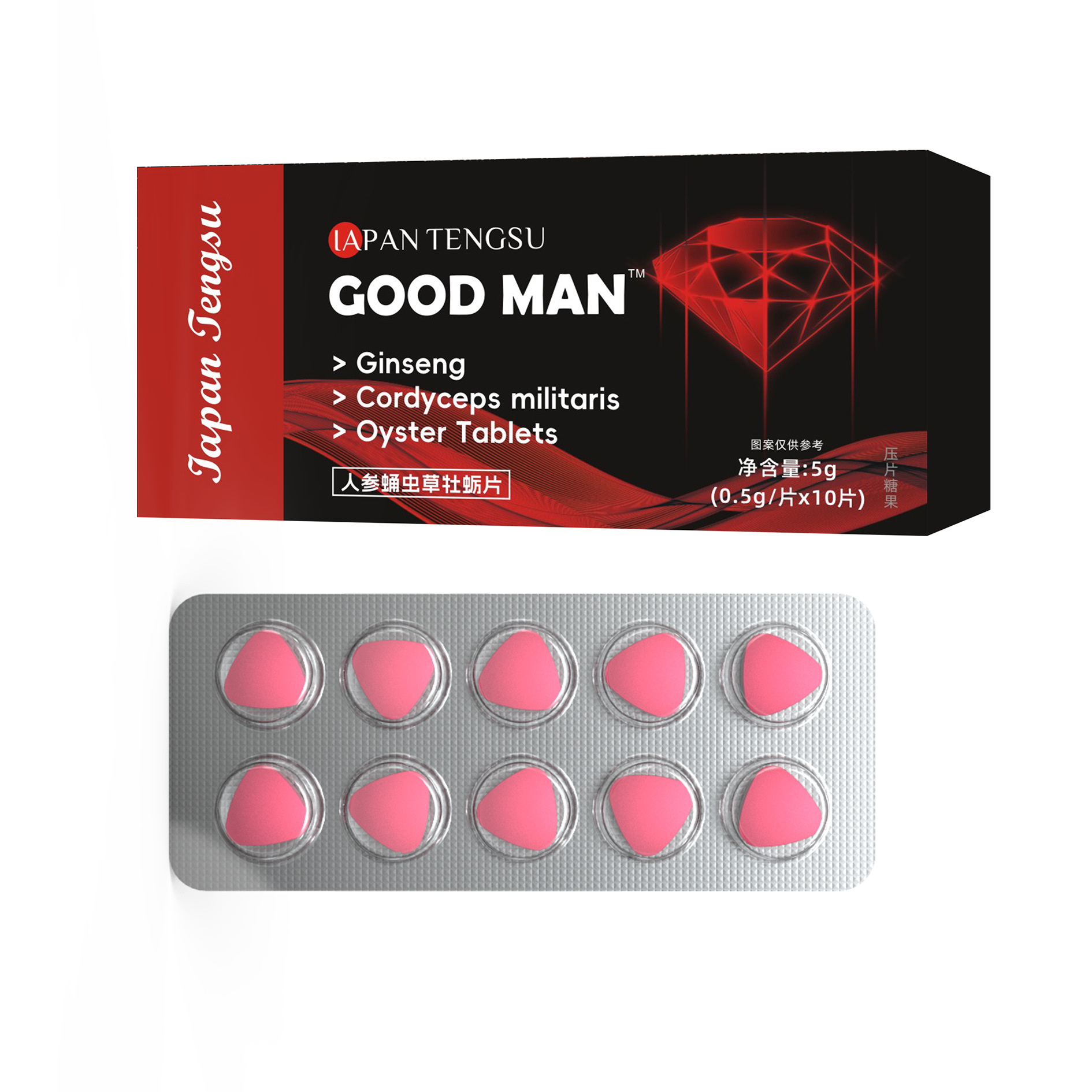 クラシックレッドダイヤモンド男性用強壮剤】高麗人参、コンブチャタケ、牡蠣タブレットを中高年の方に適した三角タブレット10錠で補給