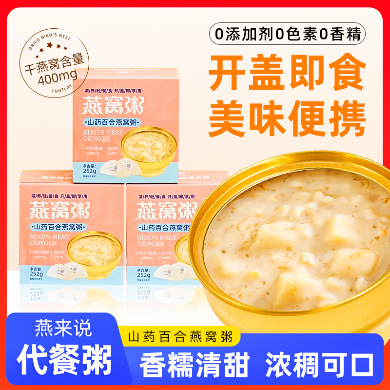 百合山薬燕巣粥礼箱妊娠期産後日常男女滋補代食夜食夜午後茶8杯