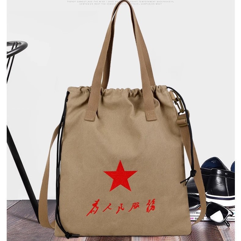 人民サービスのためにキャンバスを包んで男性の肩を懐かしにします。