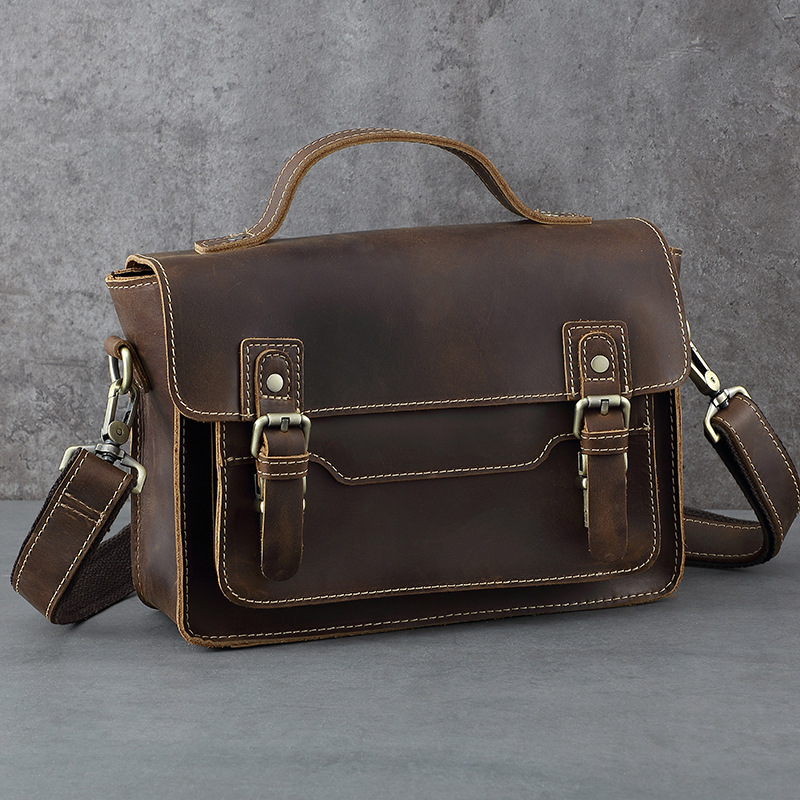 クロスボーダー手作りのトップ層牛革カジュアルな斜め掛けバッグ男性レトロな植なめ皮ケンブリッジバッグ本革手提げ郵便バッグ