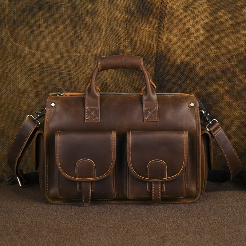 クレイジーホースレザー メンズハンドバッグ 一層牛革 メンズメッセンジャーバッグ 本革斜め掛けバッグ メンズパソコンバッグ 大容量