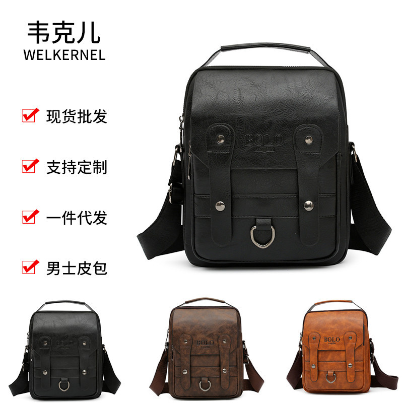 ショルダーバッグ男性斜め掛け縦型レトロカジュアル男性本革質感ショルダーバッグビジネス男性カバンハンドバッグカバン