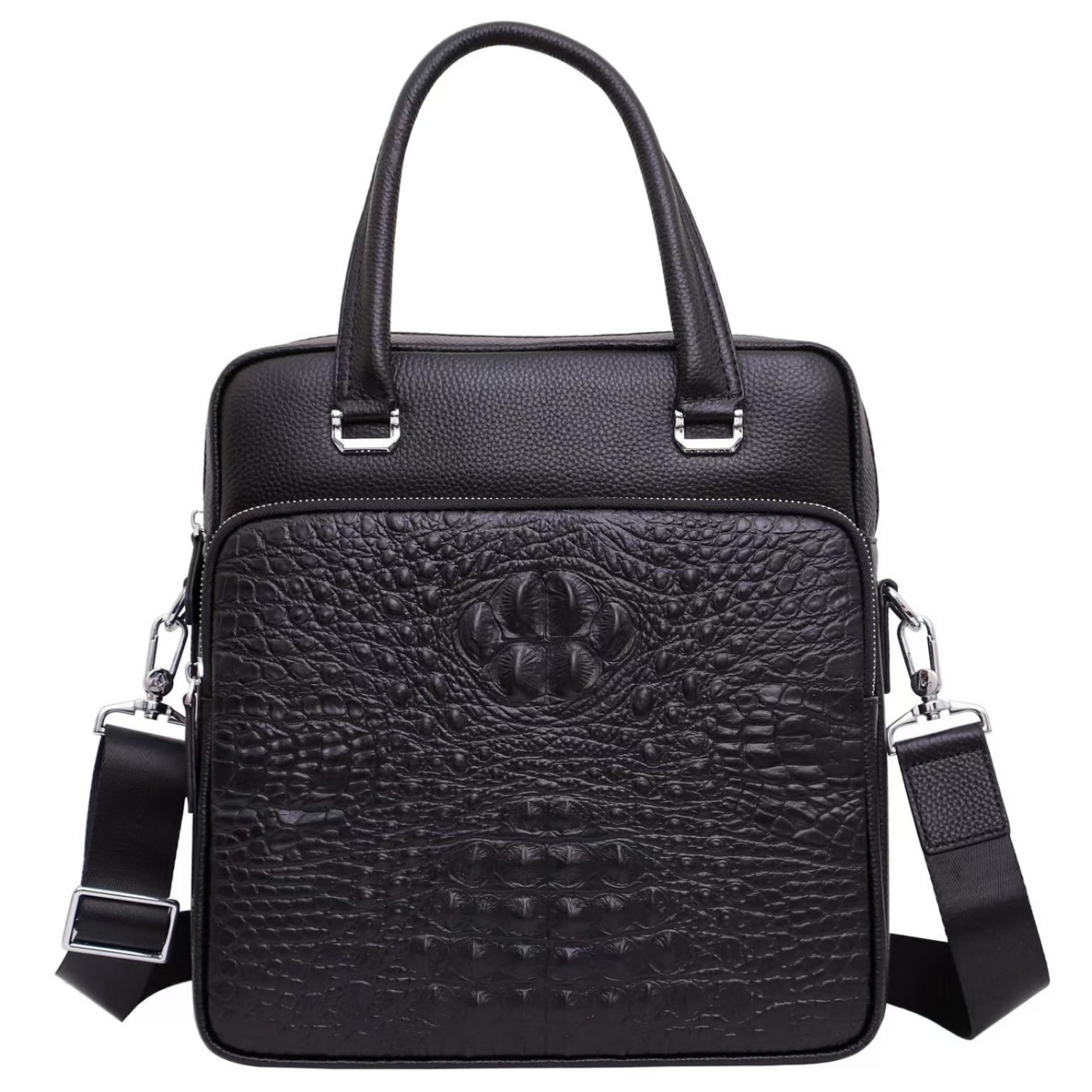 メンズビジネス本革ハンドバッグ、一層牛革、縦型クロコダイル柄、ブリーフケース、斜め掛け、ショルダーバッグ