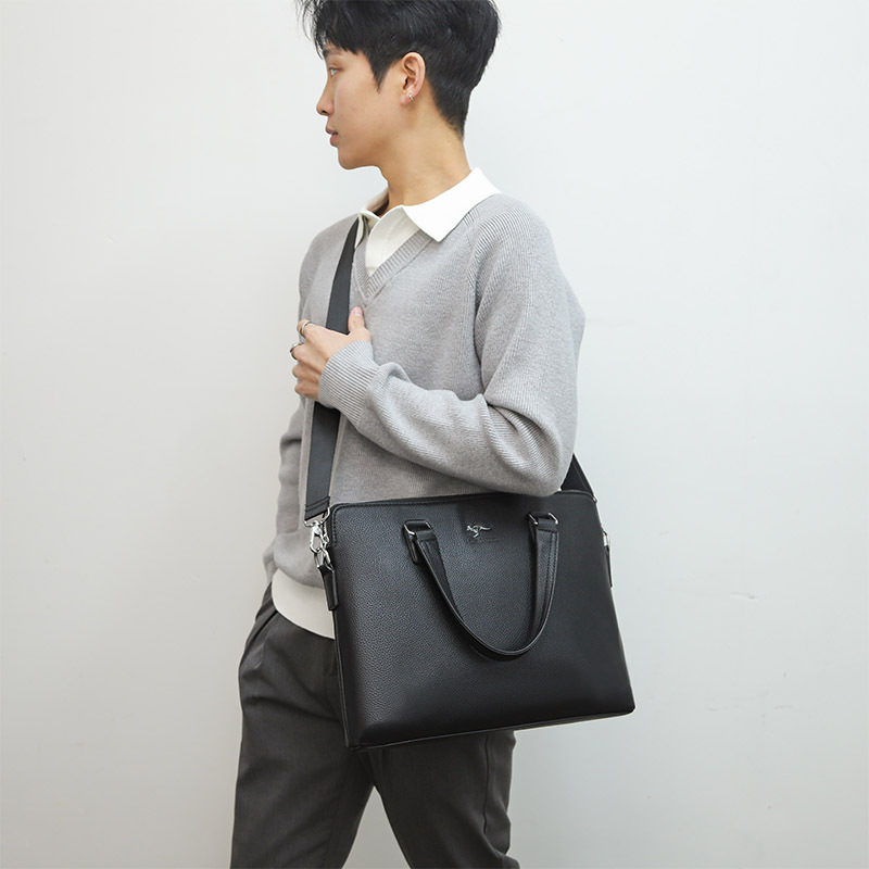 カンガルー男性ブリーフケース横型ファイルバッグビジネスハンドバッグシンプルパソコン学生軽量斜め掛けショルダーバッグ