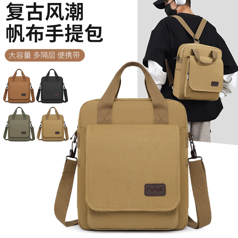 現物男性キャンバス手提げブリーフケース男性カバンショルダーバッグ斜めショルダーバッグ書類オフィスカバン卸売りクロスボーダー外国貿易
