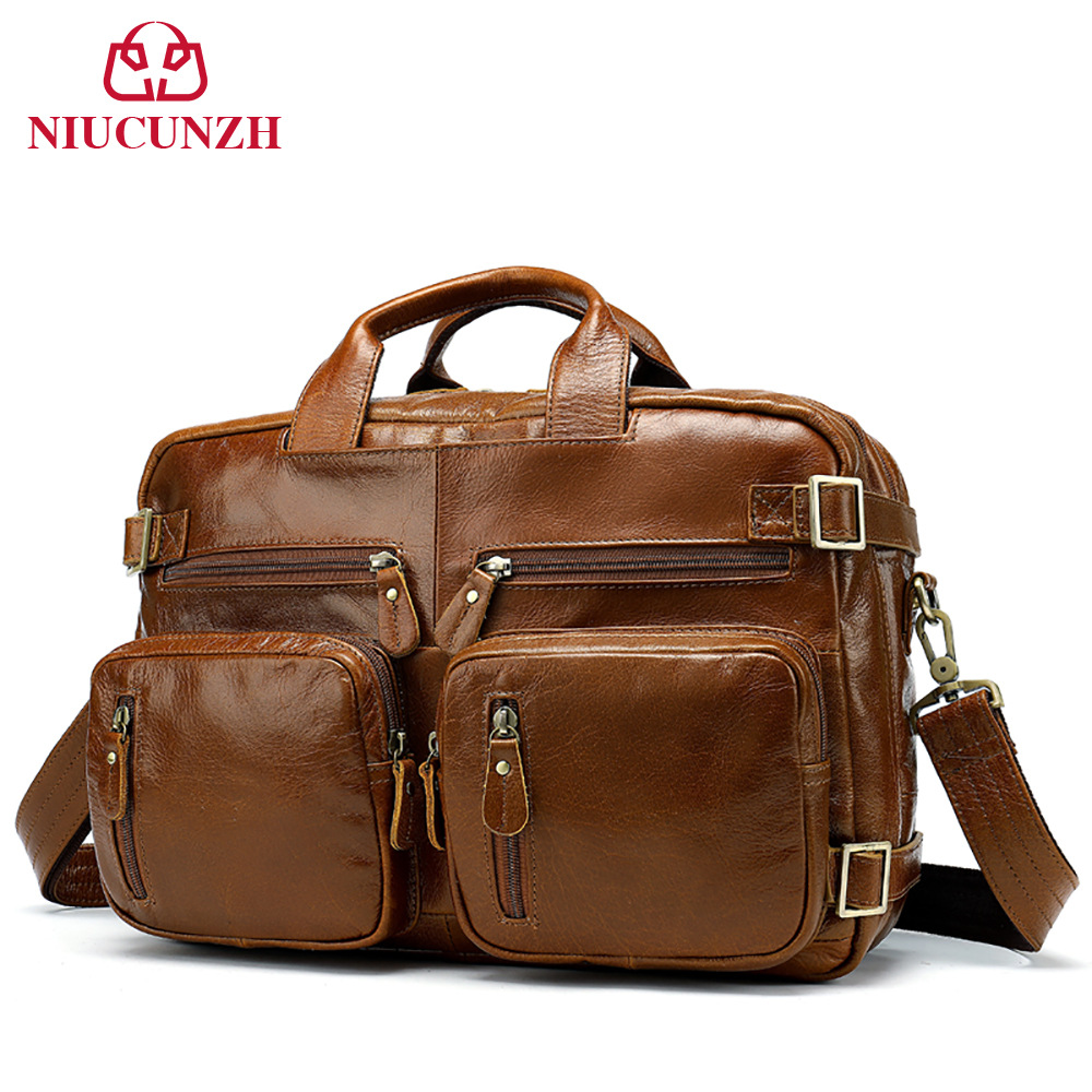ノートパソコンバッグ第一層牛革ブリーフケース大容量ファイルストレージショルダークロスボディハンドバッグ男性用