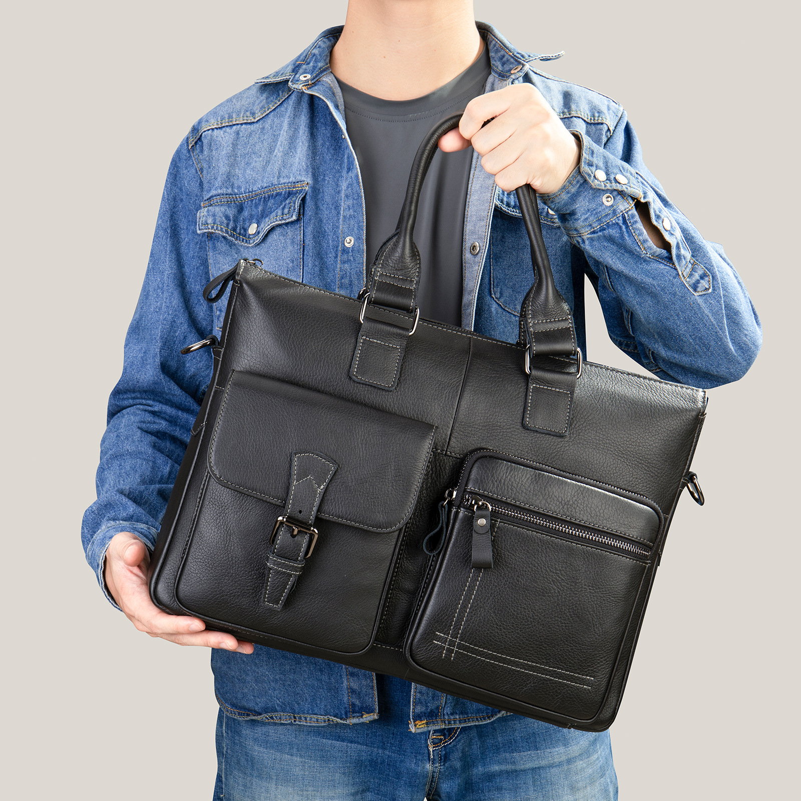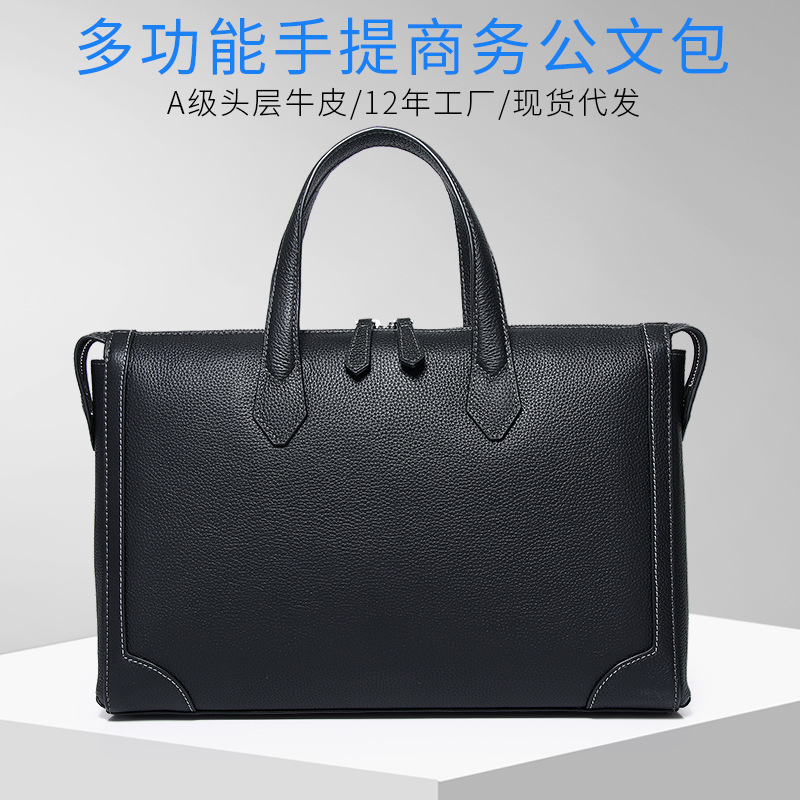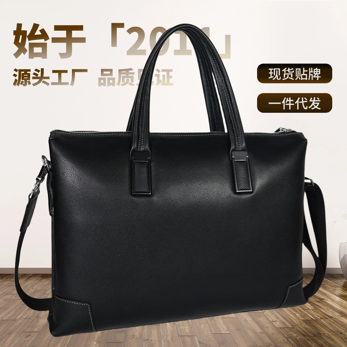 クロスボーダー人気大容量マルチポケット新型メンズ本革ハンドバッグビジネス通勤男性用ブリーフケース卸売り
