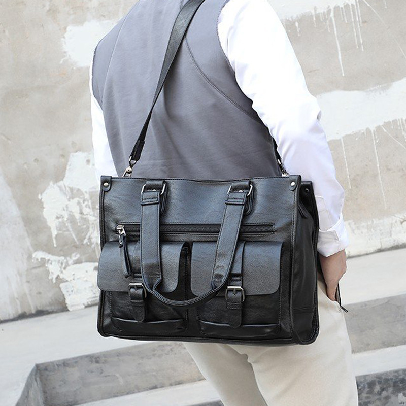 メンズ横型大容量カジュアルハンドバッグビジネスミーティングバッグ4AファイルYishanコンピュータバッグクロスボディブリーフケース