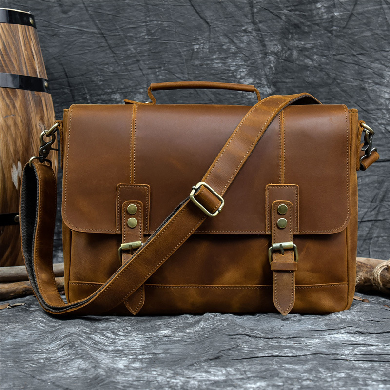レトロカジュアルトップ牛革ブリーフケースオリジナル本革ハンドバッグ男性シングルショルダーバッグ狂馬皮パソコンバッグ