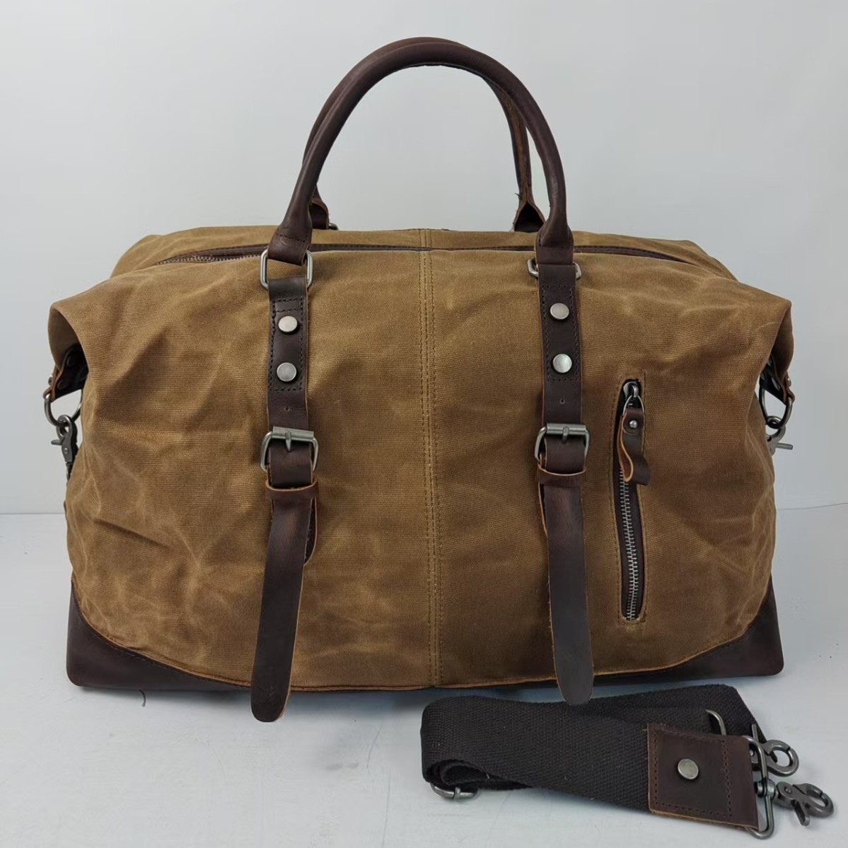 男性レトロ旅行バッグ防水大容量ハンドバッグ油ワックスキャンバスバッグ斜めショルダーバッグ
