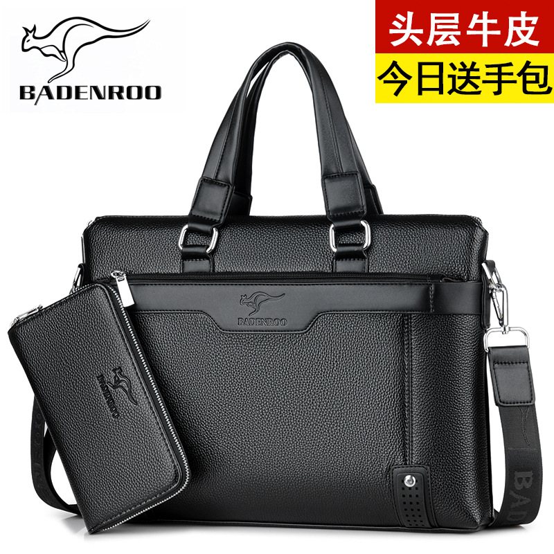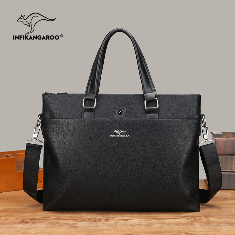 クールなカンガルー男性のハンドバッグは、大容量のビジネスバッグの本革の質感をサポートしています。