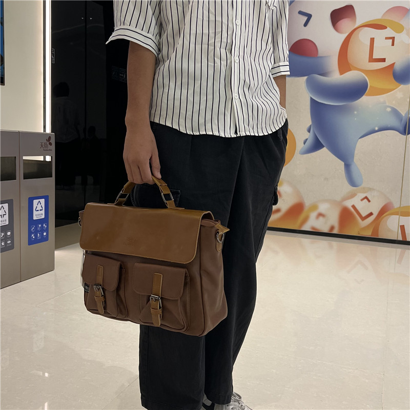 Threeboxトレンドレトロメンズハンドバッグファッションビジネスショルダーバッグ日系ファイルパソコン斜めがけショルダーバッグ