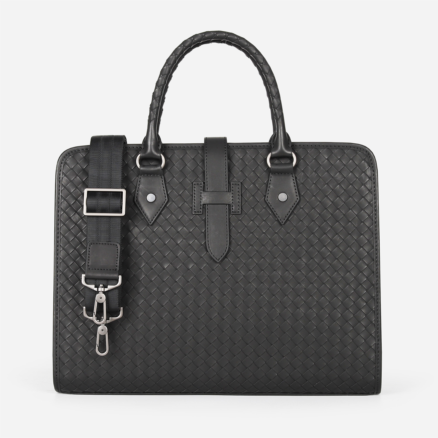 トップ層牛革男性バッグビジネスハンドバッグ真皮編み横型ショルダーバッグカジュアルブリーフケースシングル肩男性バッグ
