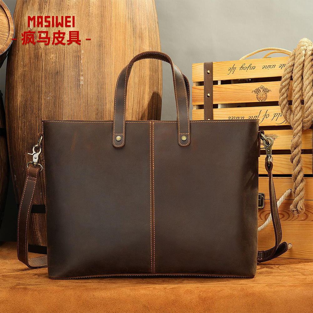 新型クレイジーホースレザー メンズ ハンドバッグ 高級感 メンズ シンプル ハンドバッグ ビジネス 通勤 パソコンバッグ